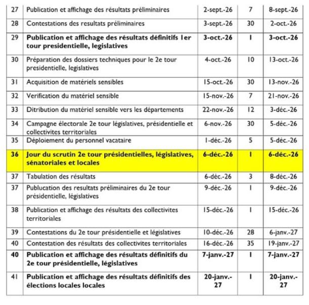 Dans ce calendrier électoral, le CEP prévoit que le 20 janvier 2027, le pays aura des dirigeants issus des élections. Mais on en est encore bien loin de cette projection.